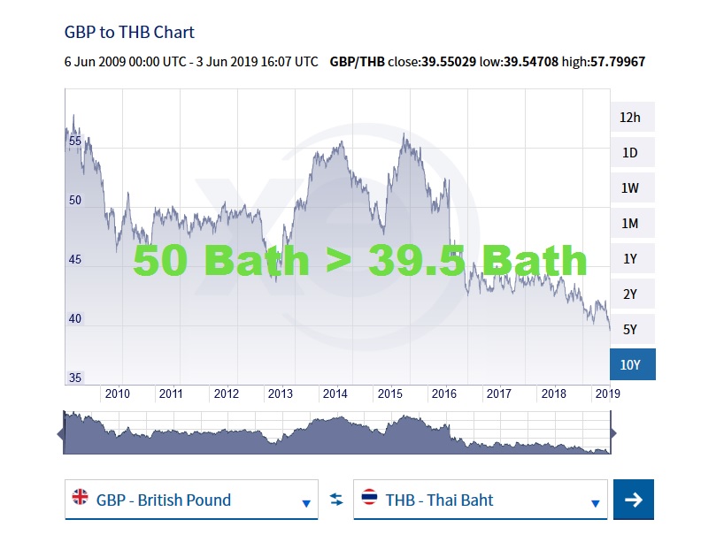 2. อังกฤษ จาก Brexit จากช่วงพีค 50 บาทต่อ 1 ปอนด์ ตอนนี้บาทแข็ง ชนะค่าเงินปอนด์ที่สุดในรอบ 10 ปี เหลือ 39.5 บาท ต่อ 1 ปอนด์ ถ้า No Deal อาจจะลงต่ำกว่าอีก ถูกลด 20 % ถึงแม้จะต้องขอวีซ่า แต่ก็คุ้มกว่าเดิมเยอะ