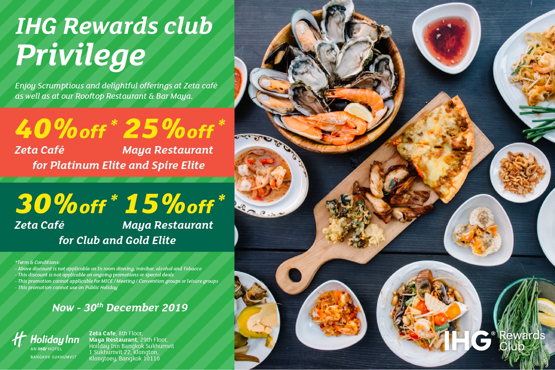อันนี้ถือเป็น โปรโมชั่น สายกิน อันแรกๆ ของเครือ IHG เลยก็ว่าได้ สำหรับสมาชิกของเครือ IHG สามารถโชว์บัตร หรือ บัตรใน App IHG เพื่อเป็นส่วนลดในการรับประทานอาหารในโรงแรมเครือ IHG โซน เอเซีย แปซิฟิค ได้ทั้งหมด ไม่จำเป็นต้องนอนนะครับ