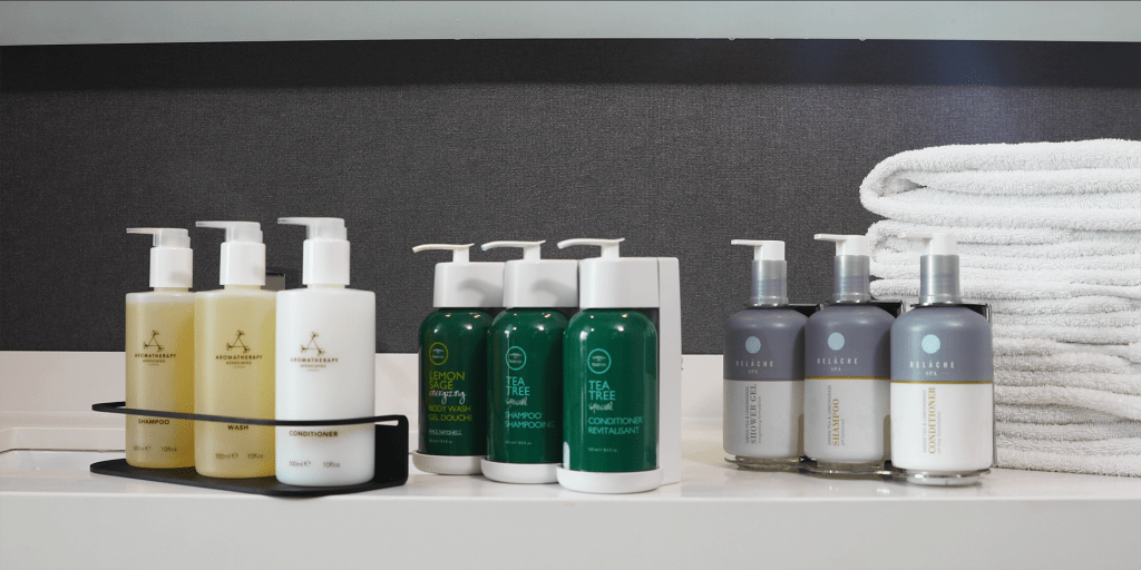 เครือ Marriott International ซึ่งต้อนรับแขกเข้าพักมากกว่า 1 ล้านคนต่อคืน กำลังขยายผลความคิดริเริ่มที่ประสบความสำเร็จที่เกิดขึ้นในปี 2018 ด้วยการเปลี่ยนขวดแชมพู, ครีมนวดผม, เจลอาบน้ำ ในห้องอาบน้ำในห้องพักจากขวดพลาสติกขนาดเล็ก เป็นขวดแบบปั๊มขนาดใหญ ซึ่งได้ดำเนินการไปแล้วกับโรงแรมที่พักในแบรนด์ต่างๆในเครือ Marriott International ได้แก่ Courtyard by Marriott, SpringHill Suites, Residence Inn, Fairfield by Marriott, TownePlace Suites, Aloft Hotels, Element by Westin, Four Points, Moxy Hotels, AC by Marriott