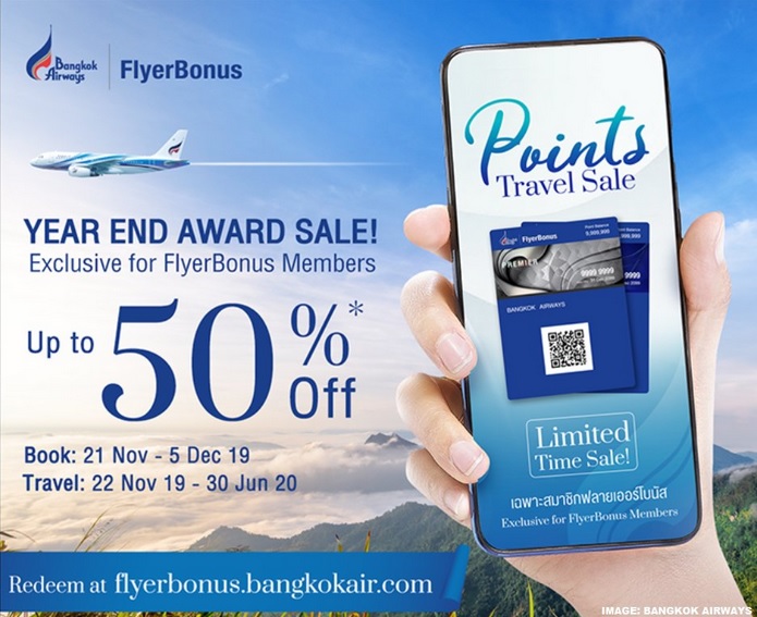 เริ่มต้นการเฉลิมฉลองเทศกาลแห่งความสุขที่จะมาถึงนี้ด้วยโปรโมชั่น ‘Points Travel Sale’ สำหรับสมาชิกฟลายเออร์โบนัส ซึ่งสามารถแลกรางวัลบัตรโดยสารโดยใช้คะแนนสะสมฟลายเออร์โบนัสลด 30-50%* บนเส้นทางบินทั้งในประเทศและต่างประเทศ (แบบเที่ยวเดียว หรือ ไป-กลับ) ที่ร่วมรายการจากตารางแลกคะแนนด้านล่าง