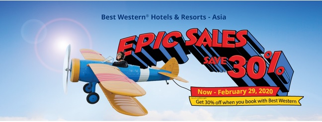 2020 will be EPIC in Asia with Best Western®! Book the EPIC Sales promotion between now and February 29, 2020 for stays taken between April 1 and November 30, 2020. Enjoy an amazing 30% off the Best Available Rate at hotels all across Asia! This is the perfect way to celebrate the start of a new decade!