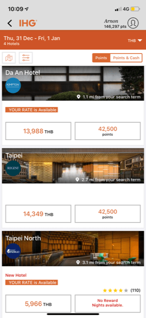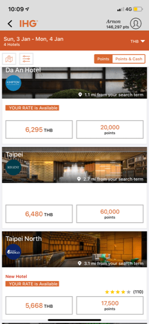 ตัวอย่าง Kimpton Da An Taipei ผมจำได้คร่าวๆ เมื่อก่อน 50000 แต้ม
