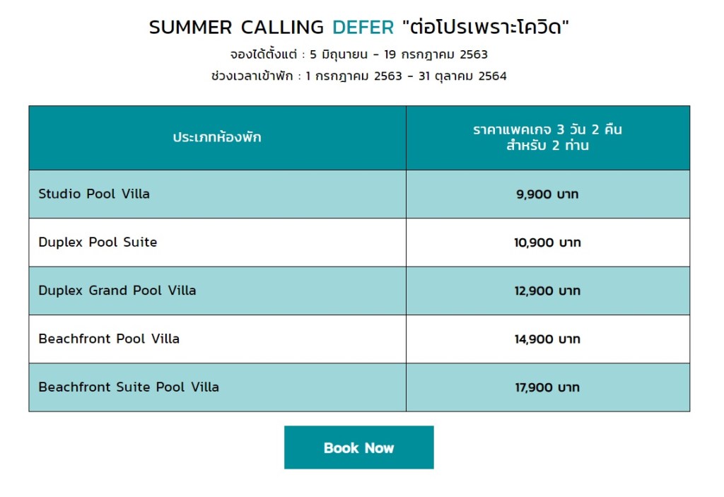 - Extra bed สามารถใช้กับห้องพัก Duplex Pool Suite, Duplex Grand Pool Villa, Beachfront Suite Pool Villa และ Casa Pool Suite เท่านั้น