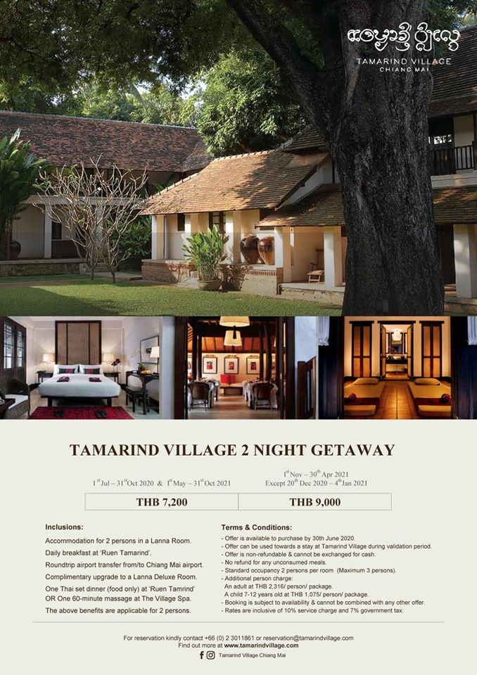 ข้อเสนอพิเศษของ Tamarind Village 3200 บาท เนตแล้ว