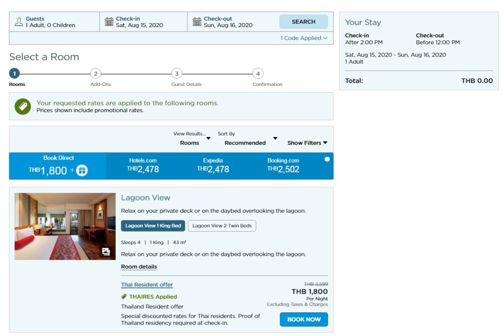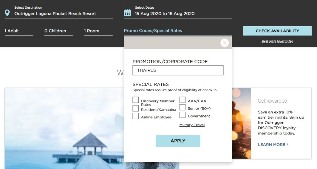 - กรุณาแจ้งรหัสส่วนลด THAIRES เมื่อทำการจองห้องพักใน www.outrigger.com.