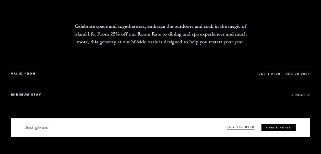 – Thai set lunch at KOH restaurant or Western set lunch at Pla Pla restaurant for two guests once per