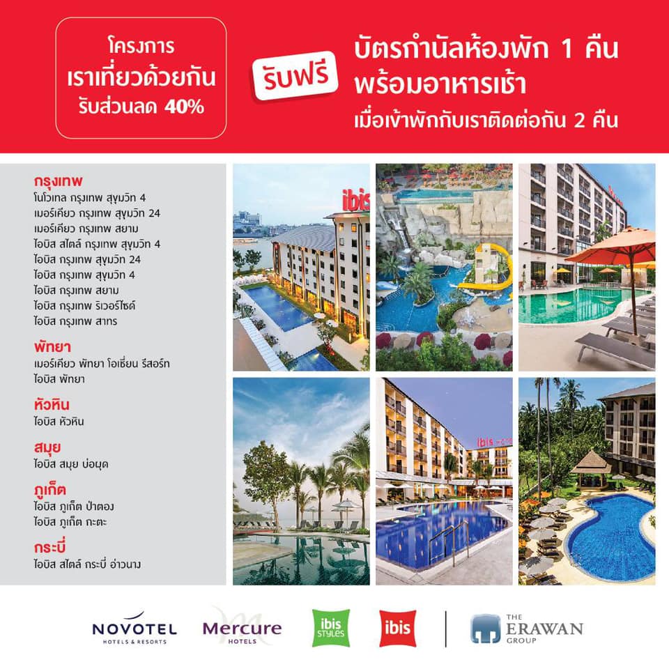 ณ โรงแรม Novotel, Mercure, ibis Styles, และ ibis ในเครือ ดิ เอราวัณ กรุ๊ป ทั้ง 16 สาขาทั่วไทย