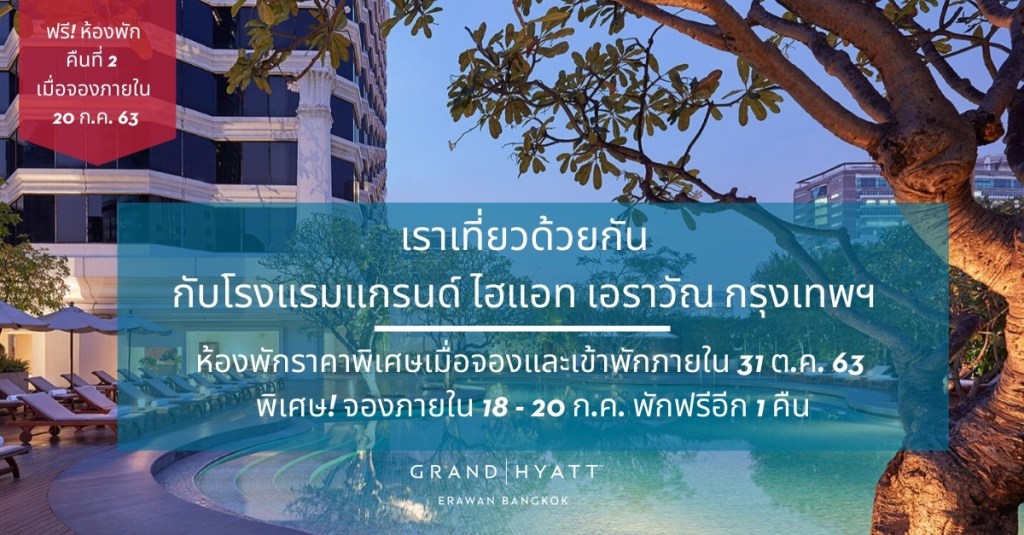ห้องพักราคาสุดพิเศษ พร้อมเครดิตสำหรับใช้บริการร้านอาหารและสปา เพื่อร่วมส่งเสริมการท่องเที่ยวไทยกับแคมเปญ ‘เราเที่ยวด้วยกัน’ จากโรงแรม แกรนด์ ไฮแอท เอราวัณ กรุงเทพฯ