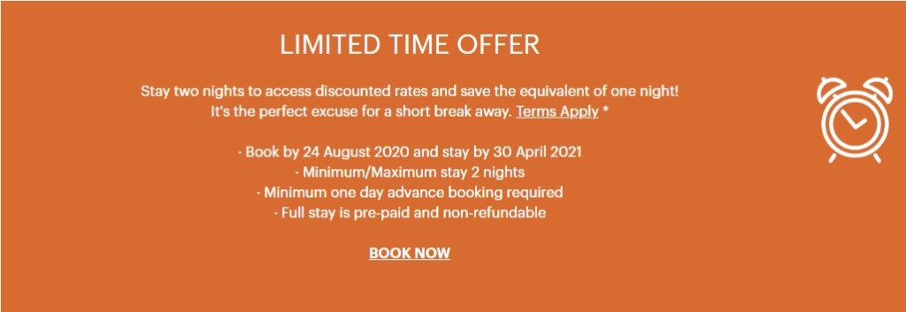 Book the Limited Time Offer rate between 00:01 local time on 3 August 2020 and 23.59 local time on 24 August 2020 for two-night stays at participating Europe IHG branded hotels between 3 August 2020 and 30 April 2021 (both dates inclusive) to receive a discount of 50% off the Best Flexible Rate (BFR). Minimum one day advance booking required.
