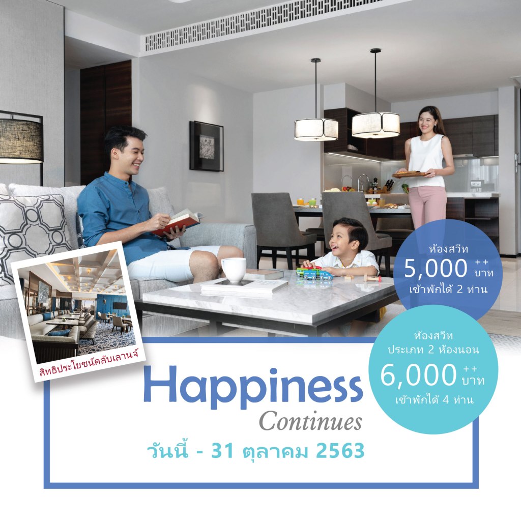 - 6,000++ บาทต่อคืน สำหรับห้องเรสซิเดนท์เชียล สวีท ประเภท 2 ห้องนอน (เข้าพักได้ 4 ท่าน)
