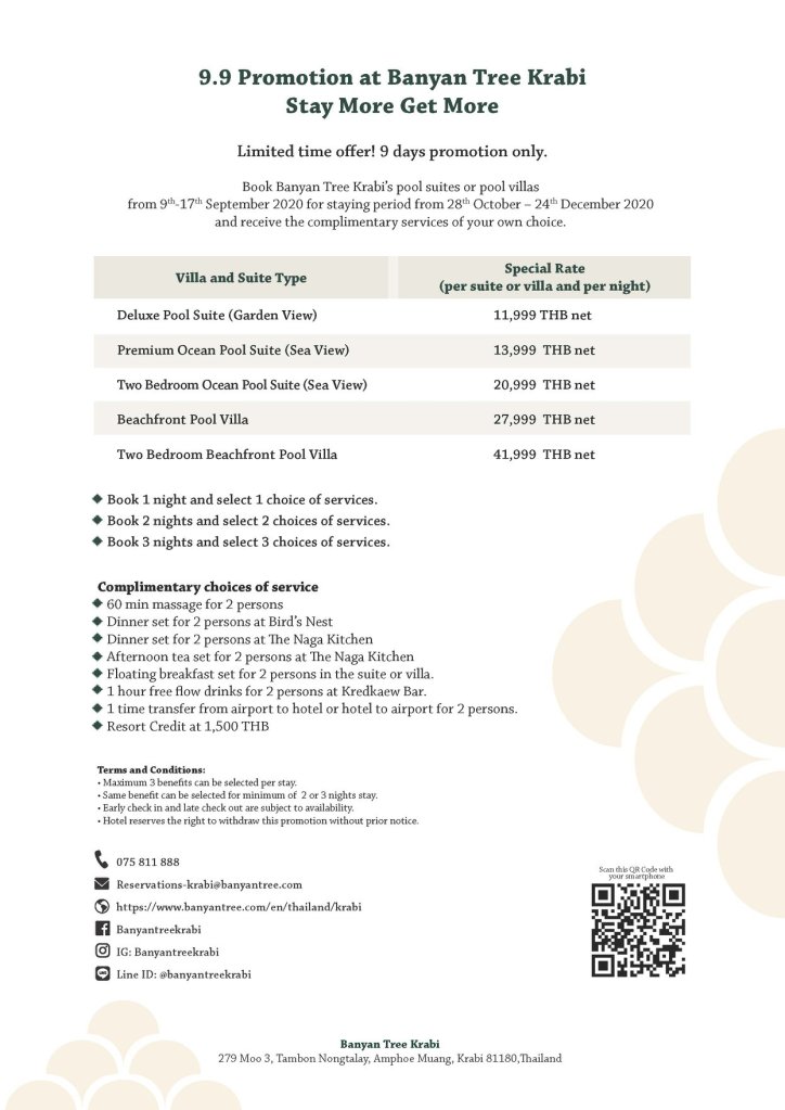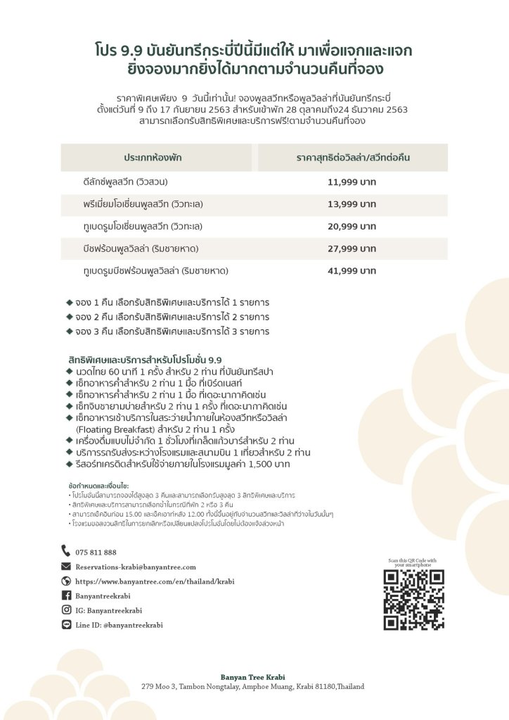 📌 ราคาพิเศษเพียง 9 วันนี้เท่านั้น! จองเข้าพักที่บันยันทรีกระบี่ตั้งแต่วันที่ 9 ถึง 17 กันยายน 2563 🛌 สำหรับเข้าพัก 28 ตุลาคมถึง 24 ธันวาคม 2563