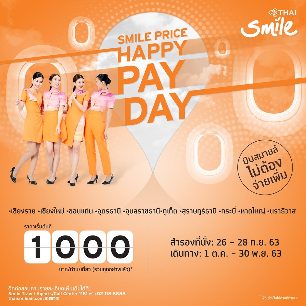 จัดให้เลย ‘Happy Pay Day’ Promotion เส้นทางภายในประเทศราคาเริ่มต้น 1,000 บาท/ท่าน/เที่ยว (รวมทุกอย่าง)* .