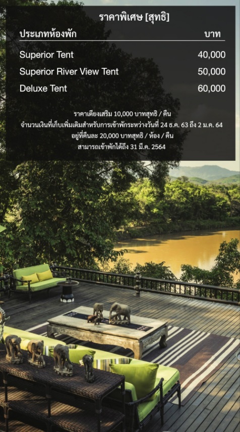 Four Seasons Tented Camp Golden Triangle เริ่มต้นที่ 40000 บาทสุทธิ ต่อคืน