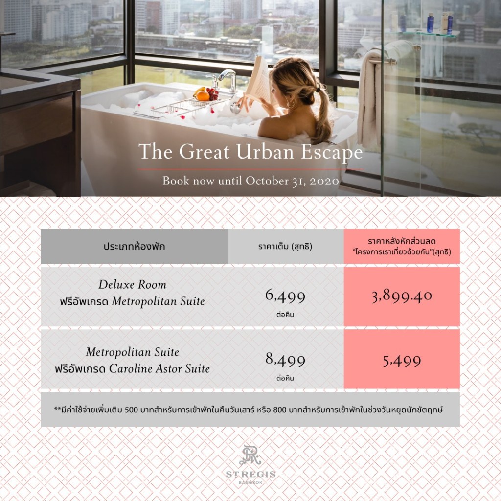 🤩 ห้ามพลาดกับโปรโมชัน 𝐓𝐡𝐞 𝐆𝐫𝐞𝐚𝐭 𝐔𝐫𝐛𝐚𝐧 𝐄𝐬𝐜𝐚𝐩𝐞 จาก เดอะ เซนต์ รีจิส กรุงเทพฯ พร้อมสิทธิพิเศษถึง 7 อย่าง เพื่อให้คุณในเปิดประสบการณ์การพักผ่อนอย่างเหนือระดับ ในราคาเริ่มต้นเพียง 6,499 บาท