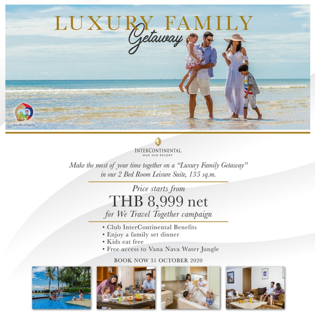 👨👩👧👦💕 วางแผนการพักผ่อนสุดหรูซึ่งออกแบบมาพิเศษสำหรับครอบครัวกับแพ็คเกจ 𝐋𝐮𝐱𝐮𝐫𝐲 𝐅𝐚𝐦𝐢𝐥𝐲 𝐆𝐞𝐭𝐚𝐰𝐚𝐲 ที่โรงแรม อินเตอร์คอนติเนนตัล หัวหิน รีสอร์ท ด้วยข้อเสนอสุดพิเศษพร้อมสิทธิประโยชน์เหนือระดับสำหรับคุณและครอบครัวที่จะสร้างความทรงจำที่ประเมินค่าไม่ได้ไปอีกนานเท่านาน ในห้องสวีทแบบ 2 ห้องนอน ด้วยพื้นที่กว้างขวางถึง 135 ตร.ม. ให้ทุกคนได้พักผ่อนอย่างเต็มอิ่มและสะดวกสบายกว่าที่เคย