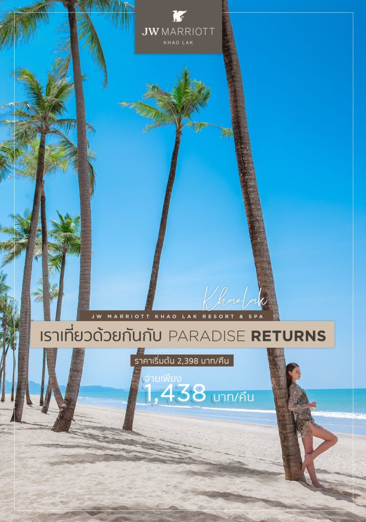 - จอง โปรโมชั่น Paradise Returns ได้เลยที่ www.jwmarriottkhaolak.com (ต้องกรอกบัตรเครดิตเพื่อการันตีบุ๊คกิ้ง)