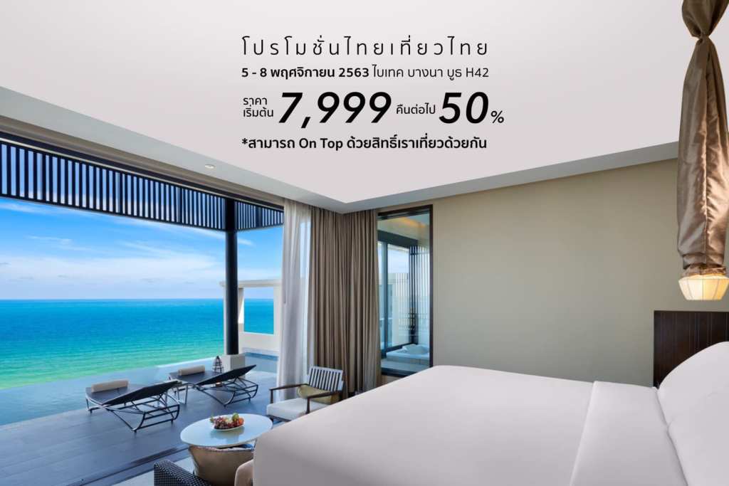 🔥 ไทยเที่ยวไทยโปรโมชั่น พบกันที่บูธ H42 จ่ายเพียง 50% สำหรับคืนที่ 2 เป็นต้นไป ห้อง Suite พร้อมสระว่ายน้ำในตัว ลดสูงสุดเริ่มต้นเพียง 2,333฿ /ห้อง/ คืน! 🤩