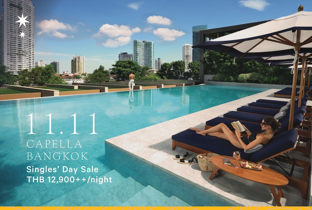For 11 days only from 11.11, amp up your next staycation at Capella Bangkok with a complimentary room upgrade and daily resort credit worth THB 5,000.- net to pamper yourself with wellness treatment or at signature restaurants and bar, including Côte, a collaboration with 3-Michelin star Chef Mauro Colagreco. Priced at THB 12,900++/night. Reserve from November 11 – 21, 2020 to stay until March 31, 2021.
