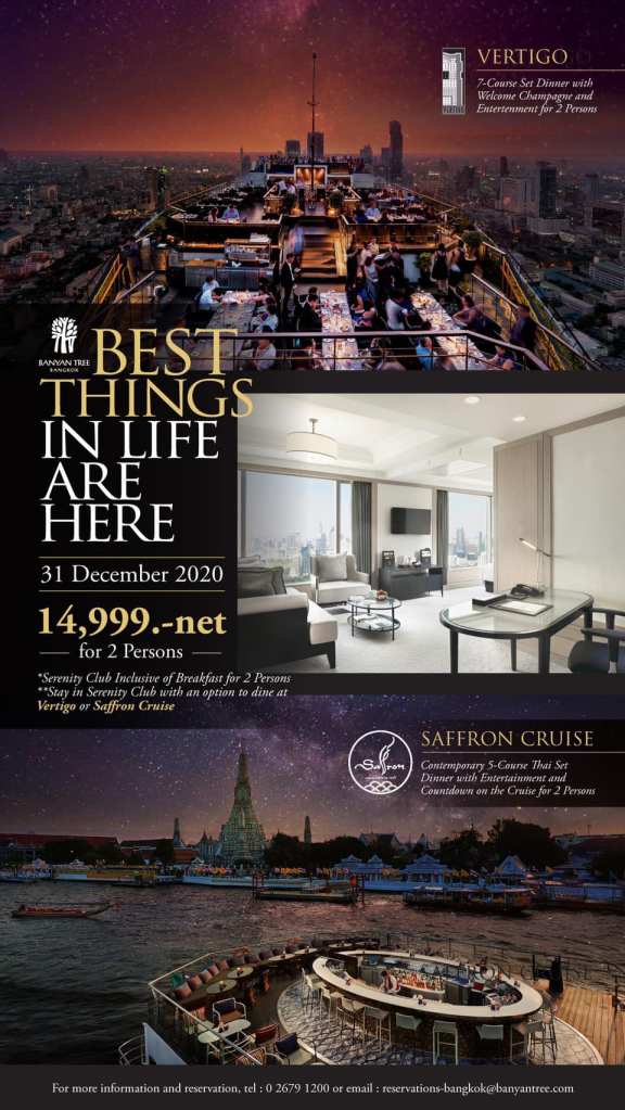 สอบถามเพิ่มเติมโทร 0 2679 1200 หรือ reservations-bangkok@banyantree.com