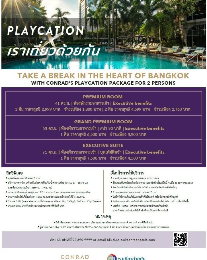 ราคาห้องพักสบายกระเป๋า จากโรงแรมคอนราด กรุงเทพฯ ใช้สิทธิ์”เราเที่ยวด้วยกัน” ยิ่งลดเพิ่มไปอีก
