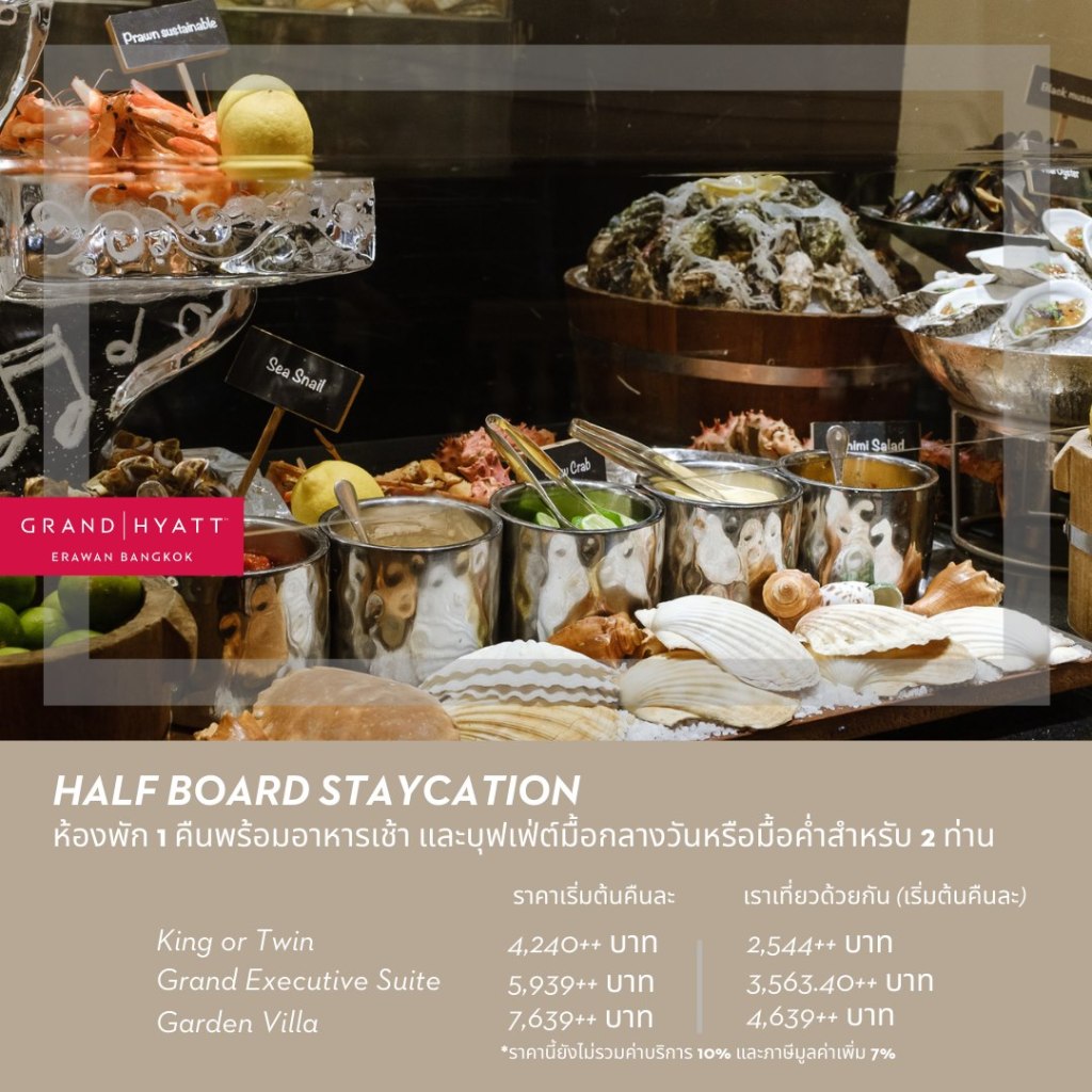 ส่วนโปรโมชั่นสดท้าย Half-board Staycation (บุฟเฟต์อาหารเช้า และบุฟเฟต์กลางวันหรือเย็น- เลือกได้อย่างใดอย่างหนึ่ง)