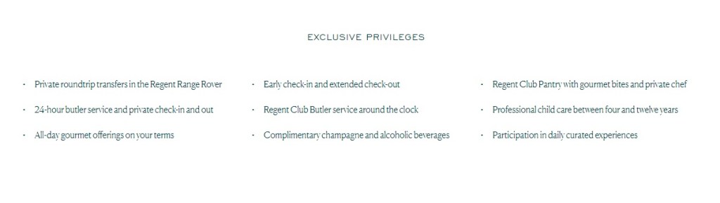 Regent Club experience for guests who book into club-level rooms. Inclusions of the club offering are: