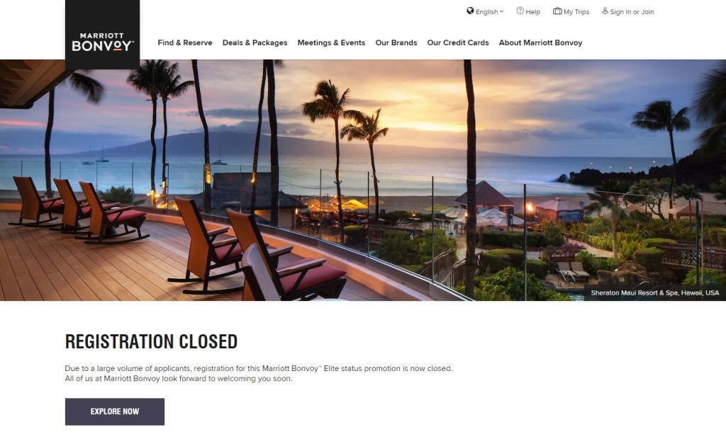 Due to a large volume of applicants, registration for this Marriott Bonvoy™ Elite status promotion is now closed.