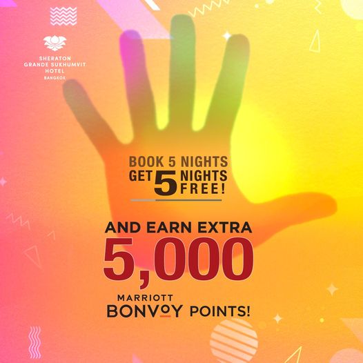 สำรองห้องพัก 5 คืน ได้รับฟรีทันทีอีก 5 คืน และคะแนนแมริออท บอนวอยเพิ่มอีก 5,000 คะแนน!