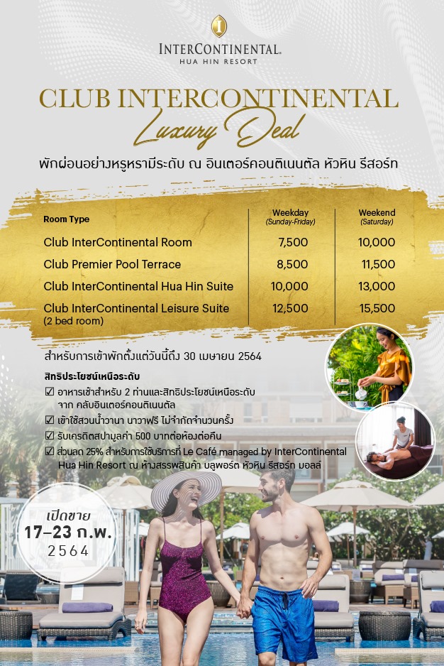 📣 Plan your luxurious weekend Hua Hin getaway in any types of our luxurious Club InterContinental® Hua Hin and get an exclusive add-on benefit and Club InterContinental® privilege with special price offer starts from 𝗧𝗛𝗕 𝟕,𝟓𝟎𝟎 𝗻𝗲𝘁 #7DaysOnly.