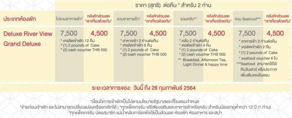 เปลี่ยนบรรยากาศทำงานที่บ้านมาชิลริมแม่น้ำกับที่สุดแห่งโปรโมชั่นต้อนรับเทศกาลตรุษจีน พร้อมรับสิทธิประโยชน์ในการใช้บริการต่างๆ ของโรงแรม จากการเป็นสมาชิกบัตร Menam Club Card II ในราคาหลังหักส่วนลด “เราเที่ยวด้วยกัน” จ่ายเพียง 4,500 บาท สำหรับเข้าพัก 2 ท่าน