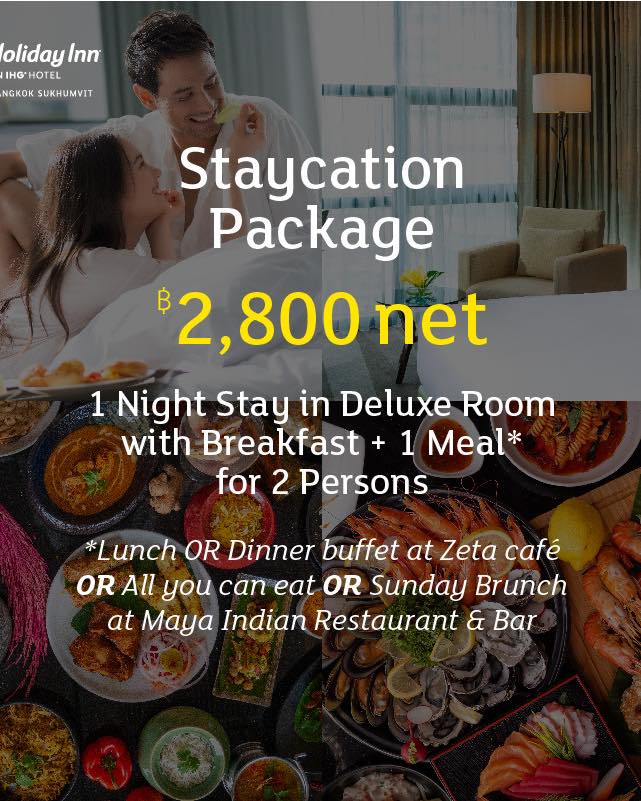 🏬 + 🍴Staycation Package ห้องพัก Deluxe room เข้าพัก 1 คืน พร้อมอาหารเช้าสำหรับ 2 ท่าน บุฟเฟ่ต์สุดคุ้ม จุกๆที่ห้องอาหาร Zeta หรืออิ่มไม่อั้นกับประสบการณ์ใหม่ ที่ห้องอาหารมายา สำหรับ 2 ท่าน ในราคาเพียง ฿2,800 net.