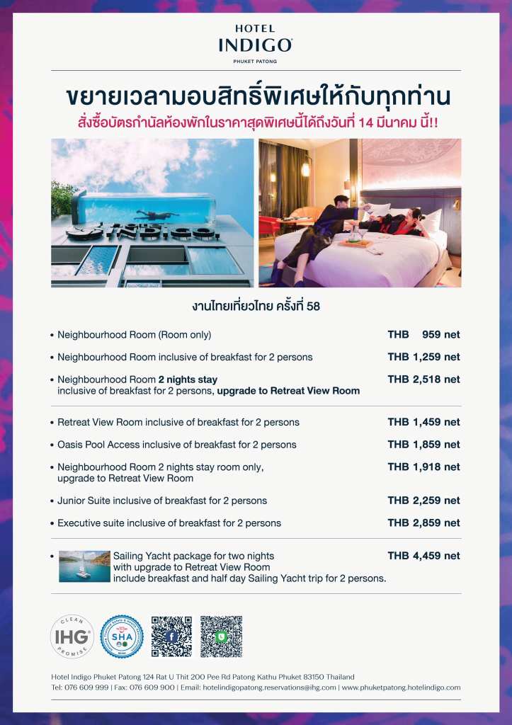 โรงแรม Hotel Indigo Phuket Patong ก็เปิดขายต่อจนถึง 14 มีนาคม 2021 นะครับ
