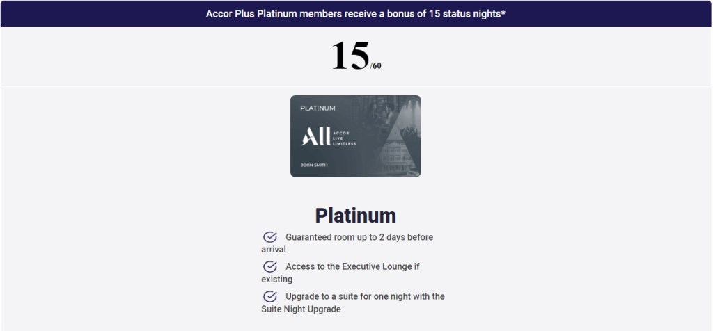 Accor Plus Platinum members receive a bonus of 15 status nights
