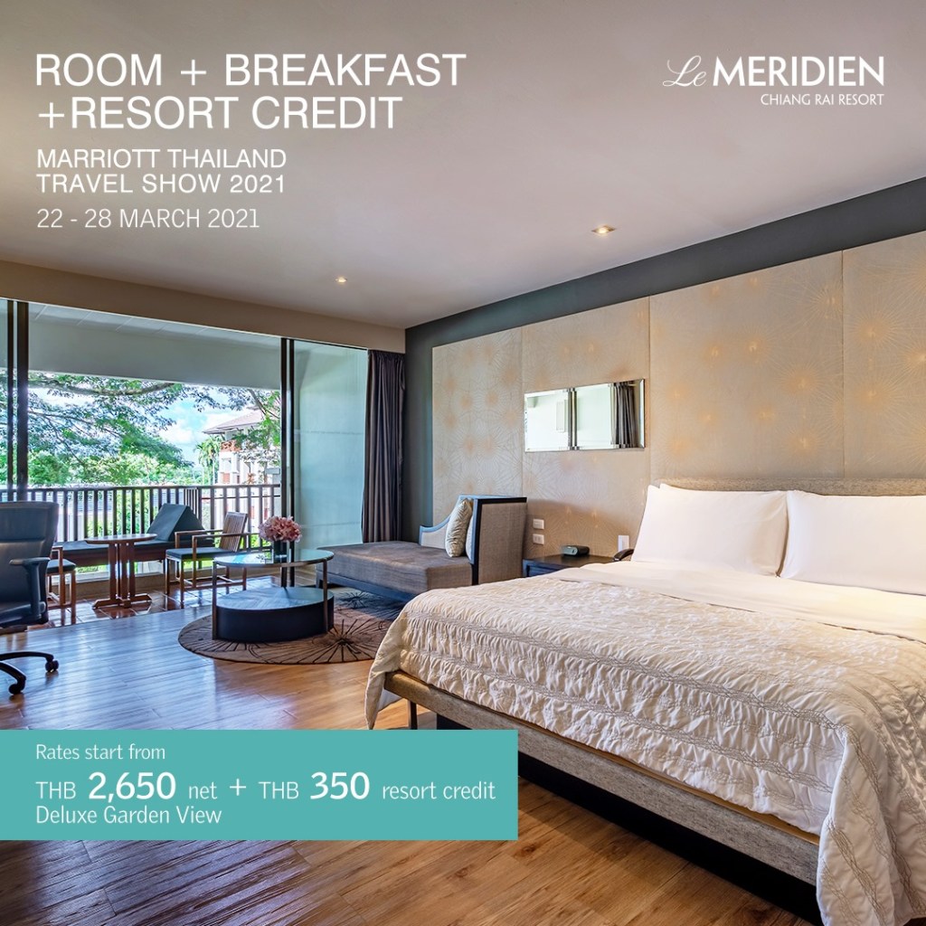 พบกับข้อเสนอสุดพิเศษจากโรงแรม Le Meridien Chiang Rai Resort ในงาน Marriott Thailand Travel Show ที่รวม กว่า 40 โรงแรมในเครือแมริออทในประเทศไทยมาออกบูธ ณ ห้างสรรพสินค้าสยามพารากอน Lifestyle Hall ชั้น 2 ตั้งแต่วันที่ 22-28 มีนาคม 2564