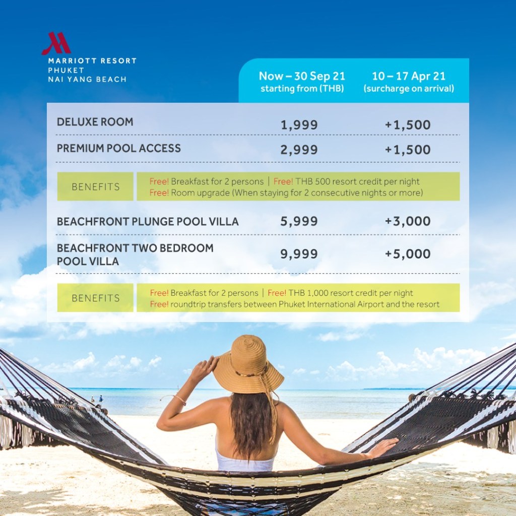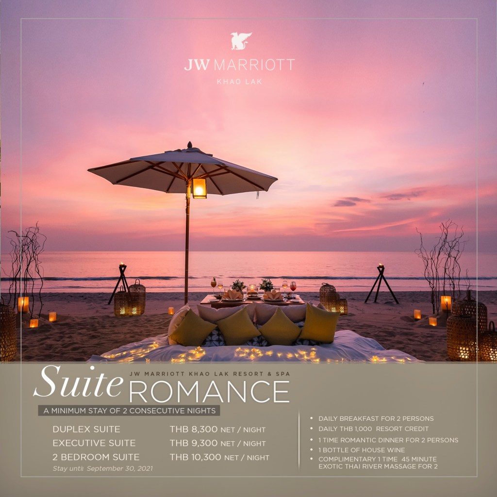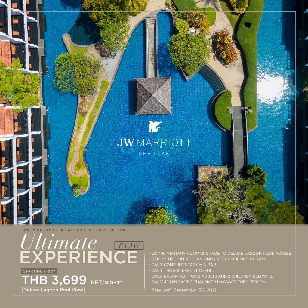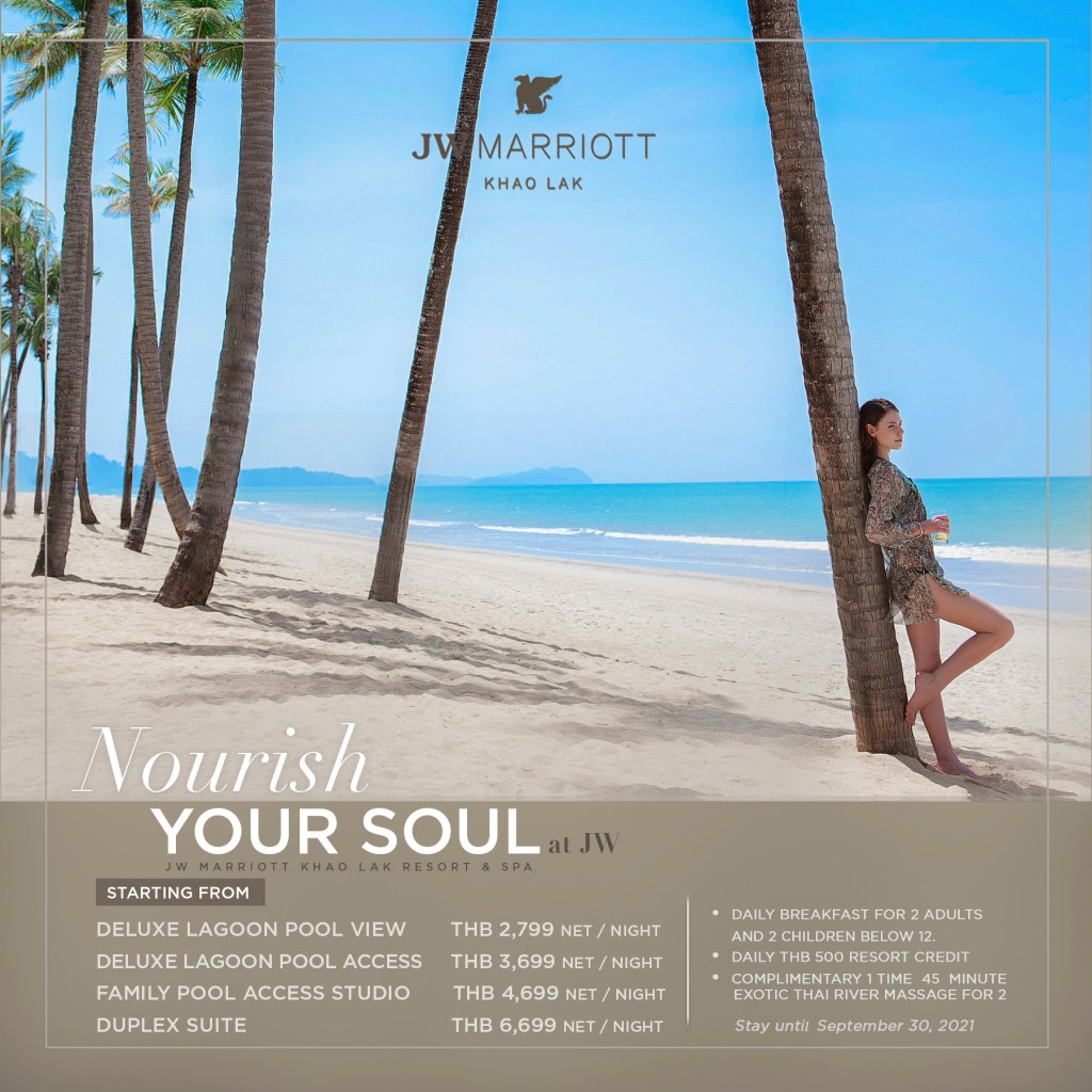 สำหรับท่านที่มองหาทริปราคาโดนใจ อัพเกรดห้องพักเพื่อให้ไลฟ์สไตล์สะดวกยิ่งขึ้น หรือผ่อนคลายกับสิทธิสปาทรีทเมนท์ฟรีต่อวันที่ JW Marriott Khao Lak Resort & Spa พร้อมข้อเสนอมากมายที่คัดสรรให้ทุกความต้องการ ในราคาเริ่มต้นเพียง 2,300 บาทสุทธิ* ต้องห้ามพลาดมาเจอกันที่งานนี้