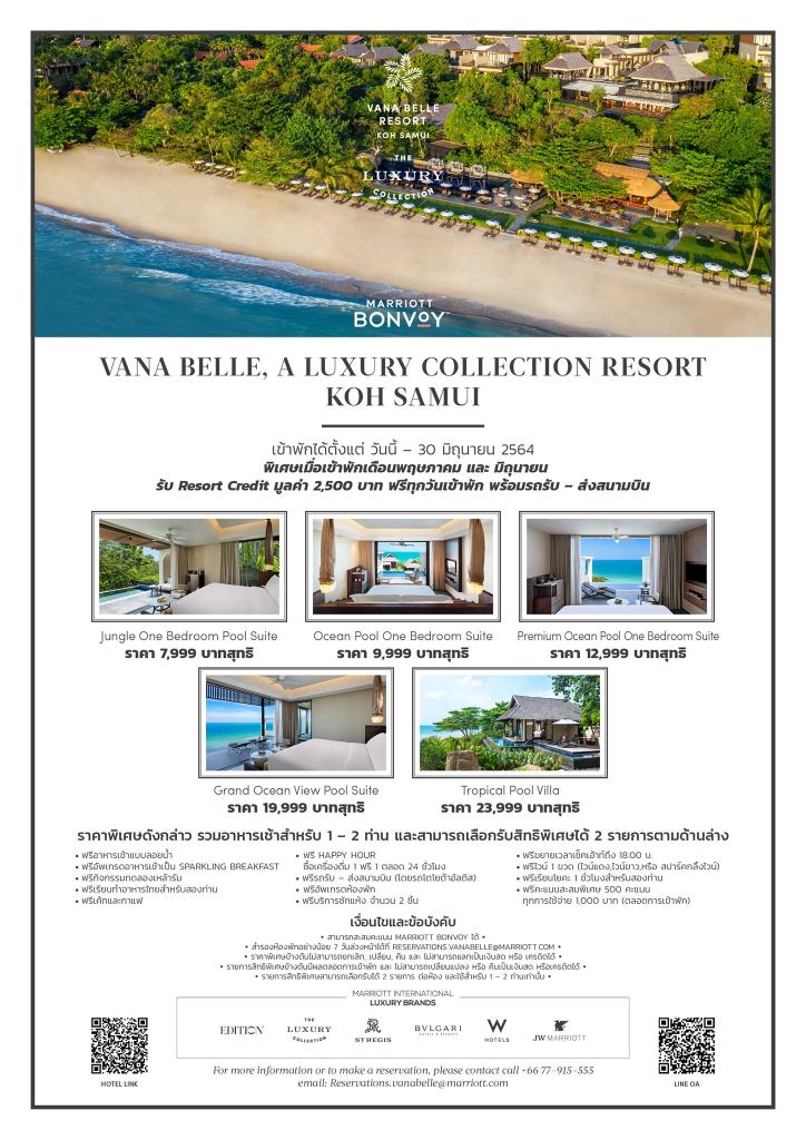 พบกับข้อเสนอสุดพิเศษจาก Vana Belle, a Luxury Collection Resort, Koh Samui ราคาเริ่มต้นเพียง THB 4,999 net/คืน ได้ที่ https://bit.ly/3eoXzVy หรือพบกันในงาน Marriott Thailand Travel Show ณ ห้างสรรพสินค้าสยามพารากอน Lifestyle Hall ชั้น 2 ได้ตั้งแต่วันที่ 22 – 28 มีนาคม 2564