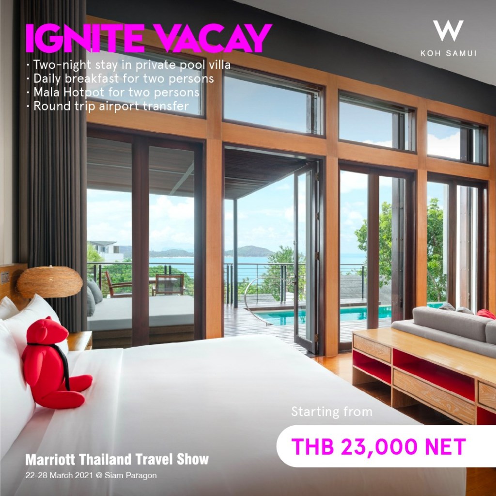 W Koh Samui จัดโปรโมชั่นสุดพิเศษ พร้อมแล้วในงาน 𝙈𝙖𝙧𝙧𝙞𝙤𝙩𝙩 𝙏𝙝𝙖𝙞𝙡𝙖𝙣𝙙 𝙏𝙧𝙖𝙫𝙚𝙡 𝙎𝙝𝙤𝙬 ที่รวม กว่า 40 โรงแรมในเครือแมริออทในประเทศไทย แล้วมาเจอกัน ที่ ห้างสรรพสินค้าสยามพารากอน Lifestyle Hall ชั้น 2 บูธ 5 ตั้งแต่วันที่ 📅22 – 28 มีนาคม 2564