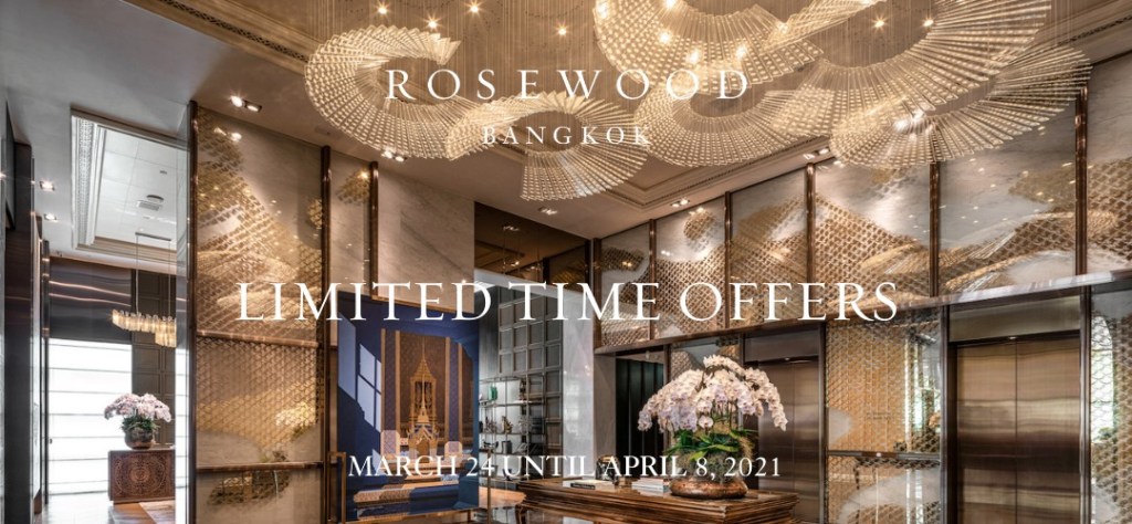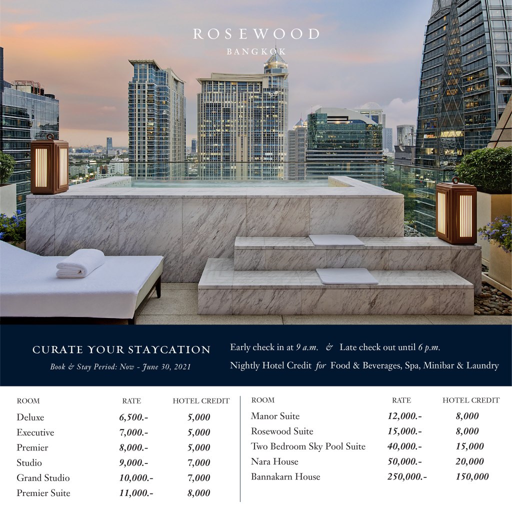กลับมาอีกครั้งกับข้อเสนอสุดพิเศษจากโรงแรมโรสวูด กรุงเทพฯ ภายในงาน “Siam Paragon Bangkok World Class Staycation Fair” ณ ศูนย์การค้าสยามพารากอน และ “A Sense of Thai 2021” ณ ศูนย์การค้าเซ็นทรัล เอ็มบาสซี่ พร้อมค้นหาตัวเลือกข้อเสนอมากมาย อาทิ ห้องพัก ห้องอาหาร และสปา