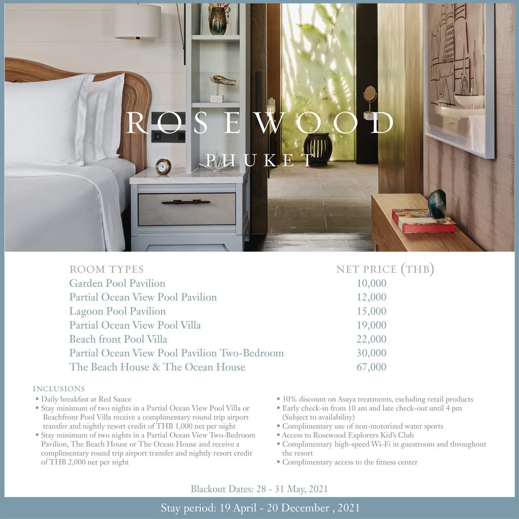 ☎️ สอบถามข้อมูลเพิ่มเติมได้ที่ 076 356 888 หรือแอด LINE ของเราที่ @rosewoodphuket (https://lin.ee/yiGiEbx)