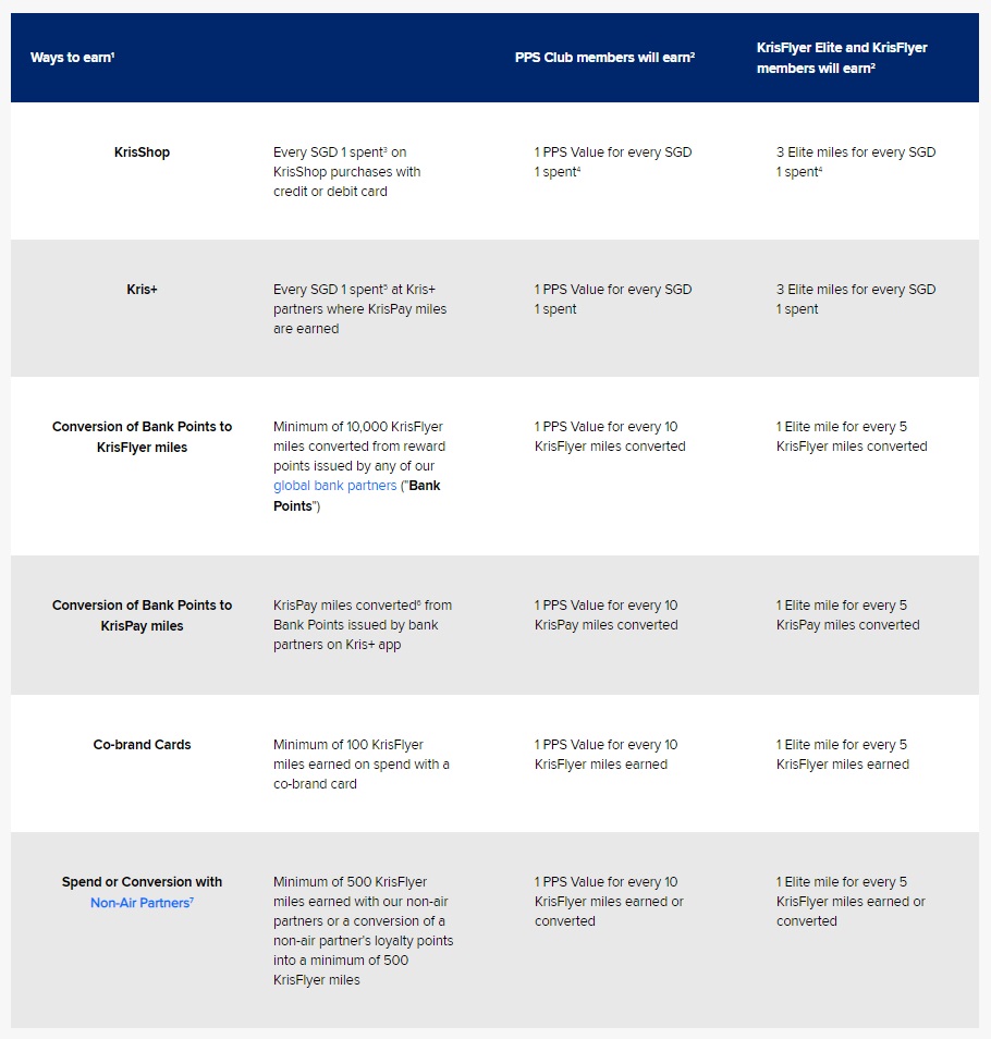 Ways to earn1 PPS Club members will earn2 KrisFlyer Elite and KrisFlyer members will earn2