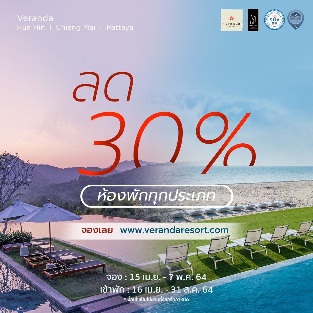 โรงแรม Veranda Resort ออกโปรโมชั่น ลด 30% ออกมานะครับ