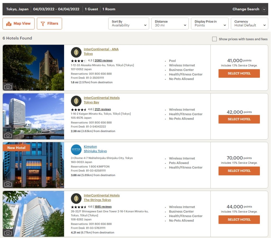 วันจันทร์ – อังคาร ที่ 4 – 5 เมษายน ที่ Intercontinental Hotels The Strings Tokyo ก็ยังใช้แต้มแลกนอน 44000 แต้มอยู่