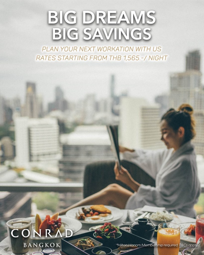🔥 𝙎𝙪𝙢𝙢𝙚𝙧 𝙎𝙖𝙡𝙚 starts today – discount 30% off for Hilton Honors members & 25% for non members! At Conrad Bangkok, the perfect combination of business and pleasure. Each room features Herman Miller chair in working corner, high-speed Wi-Fi, floor to ceiling window overlooking city view or pool view. Book within 18 May ’21 for stays from now – 30 Dec ’21 🖱 To book 𝓡𝓸𝓸𝓶 𝓸𝓷𝓵𝔂 – from THB 1,565.-/ room/ night