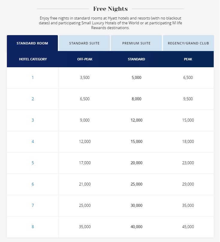 Off-peak: Fewer points will be required during Off-peak times, starting at 3,500 points per night (the best value when hotels are less busy)