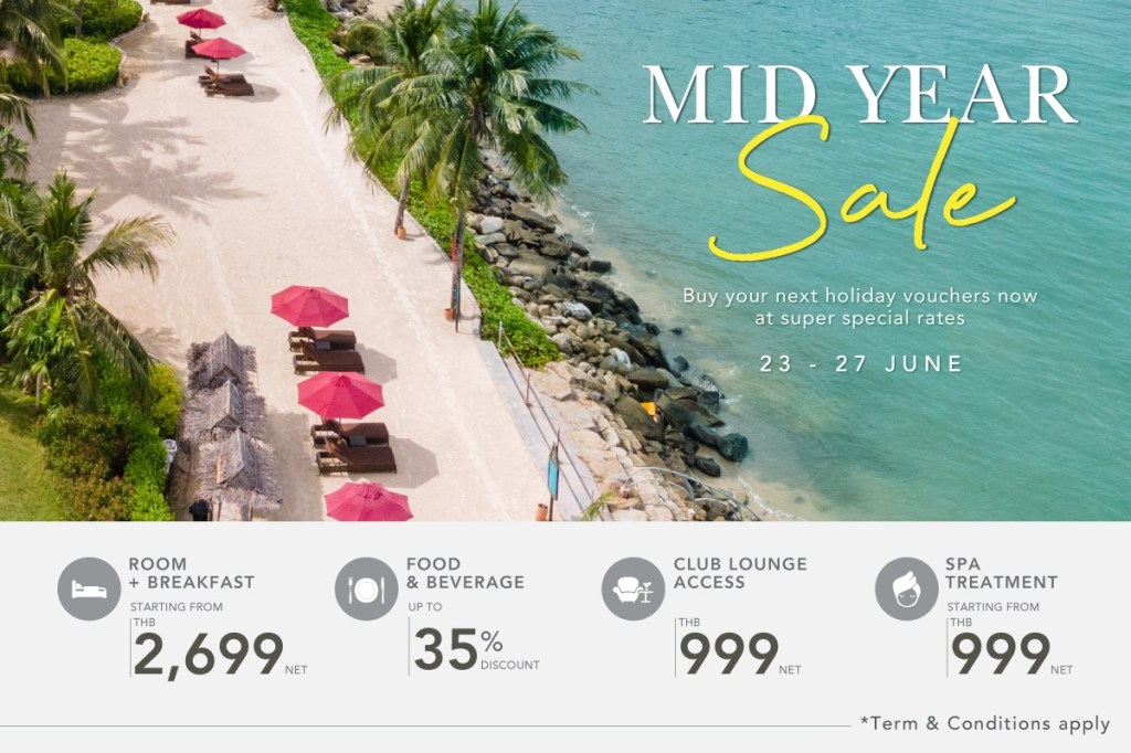 ⚡ Spend a spectacular holiday with our “Mid Year Sale” which you can’t miss out for a limited time only, we are offering the best price for every vouchers whether they are; room with breakfast, food & beverage, club lounge, and spa treatment. ⚡