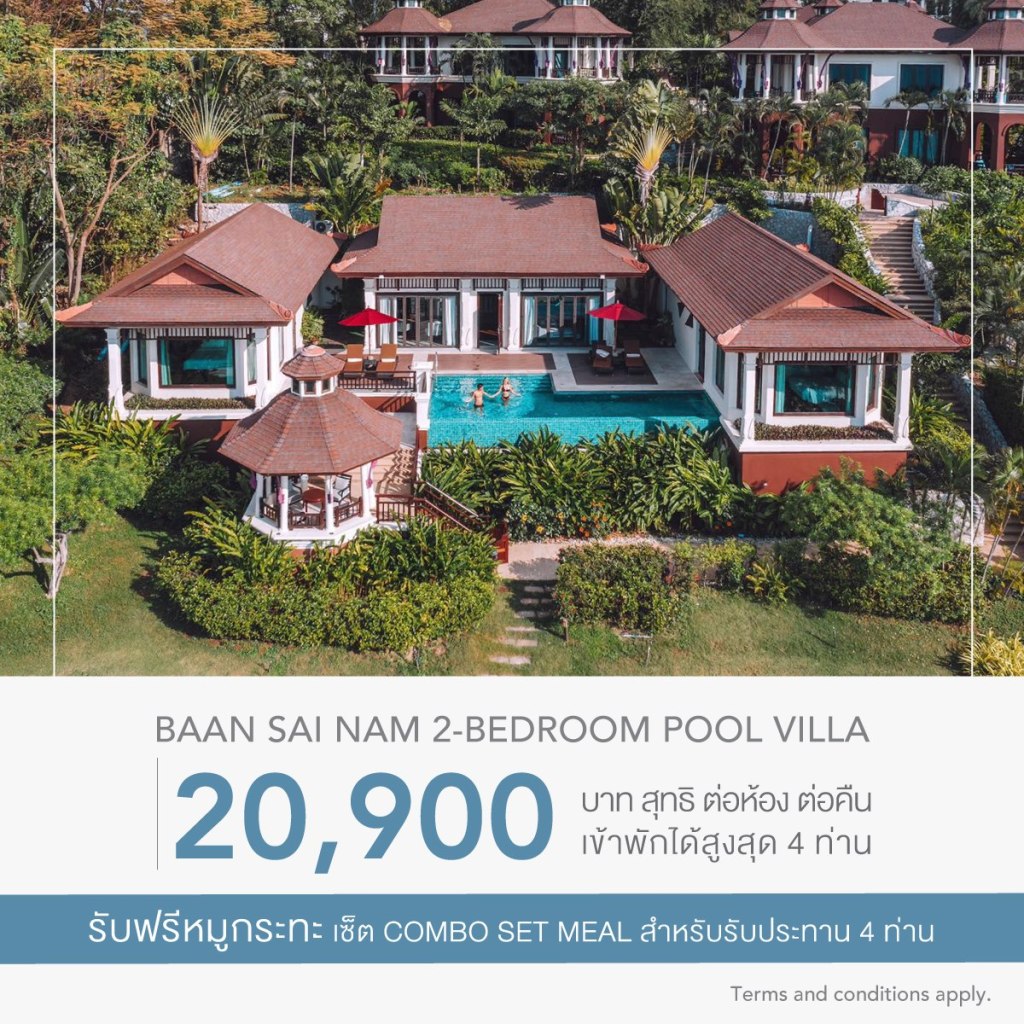 🌴 Baan Sai Nam 2-Bedroom Pool Villa ราคา 20,900 บาทสุทธิ ต่อคืน - เข้าพักได้สูงสุด 4 ท่าน