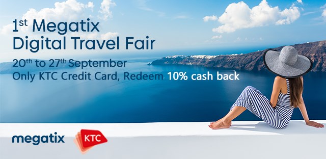 นอกจากนี้ เมกาทิกซ์ ไทยแลนด์ ได้ร่วมกับ “เคทีซี” หรือ บริษัท บัตรกรุงไทย จำกัด (มหาชน) จัดโปรโมชันพิเศษ มอบเครดิตเงินคืน 10% ให้กับสมาชิกบัตรเครดิตเคทีซีที่ใช้จ่ายในงาน งาน Megatix Digital Travel Fair ครั้งที่ 1 เพียงใช้คะแนน KTC FOREVER เท่ายอดใช้จ่าย และลงทะเบียนแลกรับผ่านเว็บไซต์ www.ktc.co.th/ktctravel หรือ https://www.ktc.co.th/promotion/travel/attractions/megatix