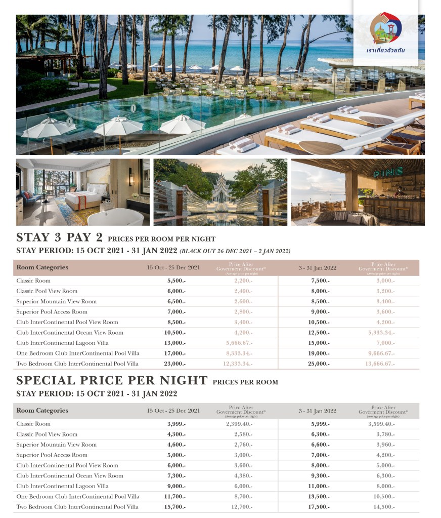 Special for Thai nationals, enjoy the government campaign #RaoTiewDuayKan Phase 3. Special rate from InterContinental Phuket Resort starting from THB 2,200 net after the 40% support from stimulus scheme.