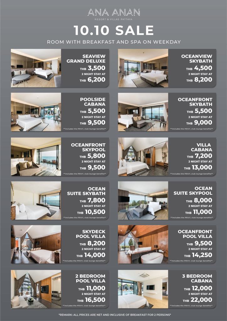*ราคาสำหรับเข้าพักวันอาทิตย์ – ศุกร์ (วันเสาร์มีค่าใช้จ่ายเพิ่มเติม)