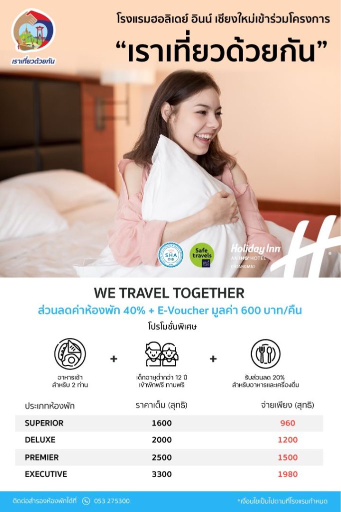 คุณพร้อม? เราพร้อม! ✨🤩 มาเที่ยวด้วยกันกับโรงแรมฮอลิเดย์ อินน์ เชียงใหม่ เราพร้อมให้บริการทั้งในส่วนของห้องพัก ห้องอาหารและบาร์ ในราคาที่ดีที่สุด เริ่มต้นเพียง 960 บาทสุทธิ/คืน (ราคาหลังจากหักส่วนลดเราเที่ยวด้วยกัน) รวมอาหารเช้าสำหรับ 2 ท่าน